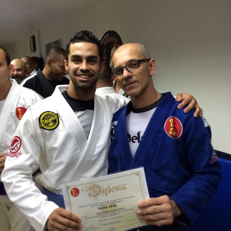 Para minha surpresa em Julho de 2014 fui graduado pelo meu Mestre Renato Bezerra que me presenteou com a faixa Azul, e com muito orgulho, dedicação e responsabilidade venho me empenhando e conto com a ajuda de meus amigos de treino para honrar essa faixa.