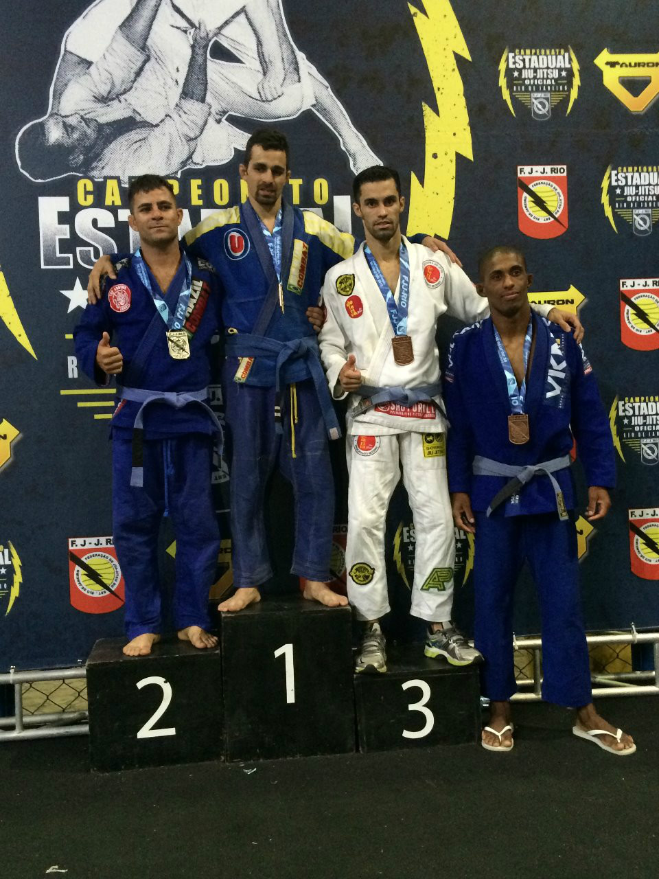 Em junho disputei o Campeonato Estadual pela FJJRIO, estava bem confiante mas não consegui o resultado desejado. Acabei ficando com o terceiro lugar perdendo por uma vantagem numa luta muito dura, um adversário muito forte. Mas não desanimei, mantive o foco e determinação!