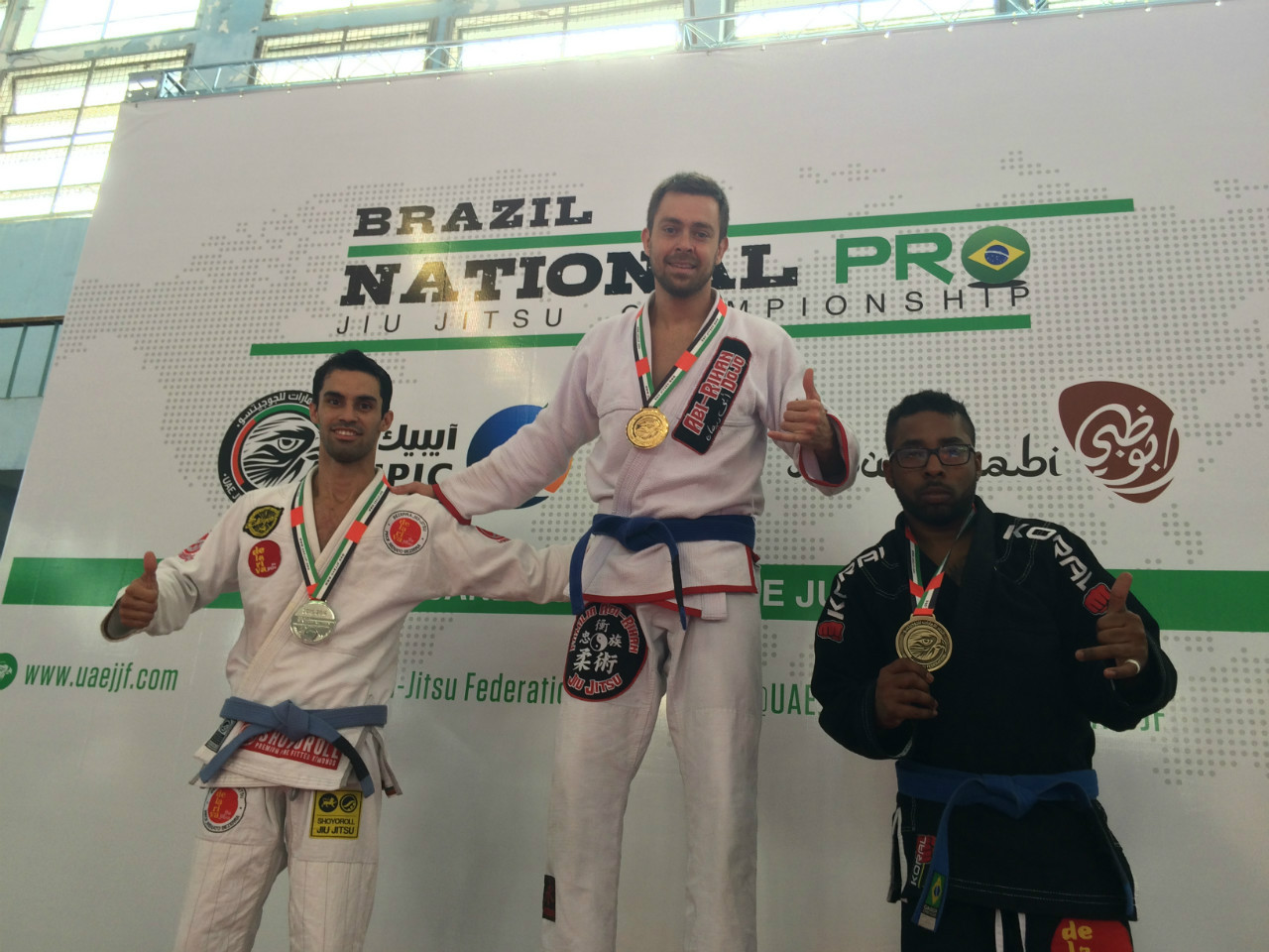 Em julho disputei o Brazil National Pró Jiu Jitsu 2015 pela UAEJJF, fui vice-campeão. Achei um pouco desorganizada, acabaram agrupando as categorias de peso o que pra mim significou que disputei um absoluto, fiz a final com um adversário bem mais pesado e forte que eu, mesmo conseguindo a raspagem fui finalizado com uma chave de panturrilha.