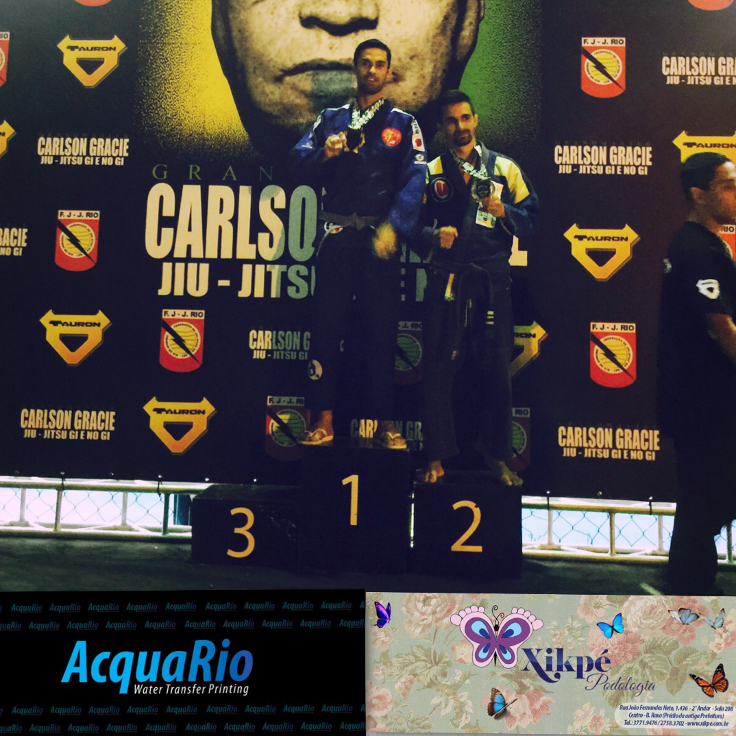 Ainda em agosto fui campeão, disputei a Copa Carlson Gracie 2015 pela FJJRIO. Lutei muito bem, 2 finalizações. Mais uma vez tive a oportunidade de fazer a final com o atleta da Nova União e venci! Consegui manter o foco e a calma com a ajuda do meu mestre, não levando em conta as derrotas passadas, fiz o meu jogo, solto, tranquilo e finalizei com arm lock.